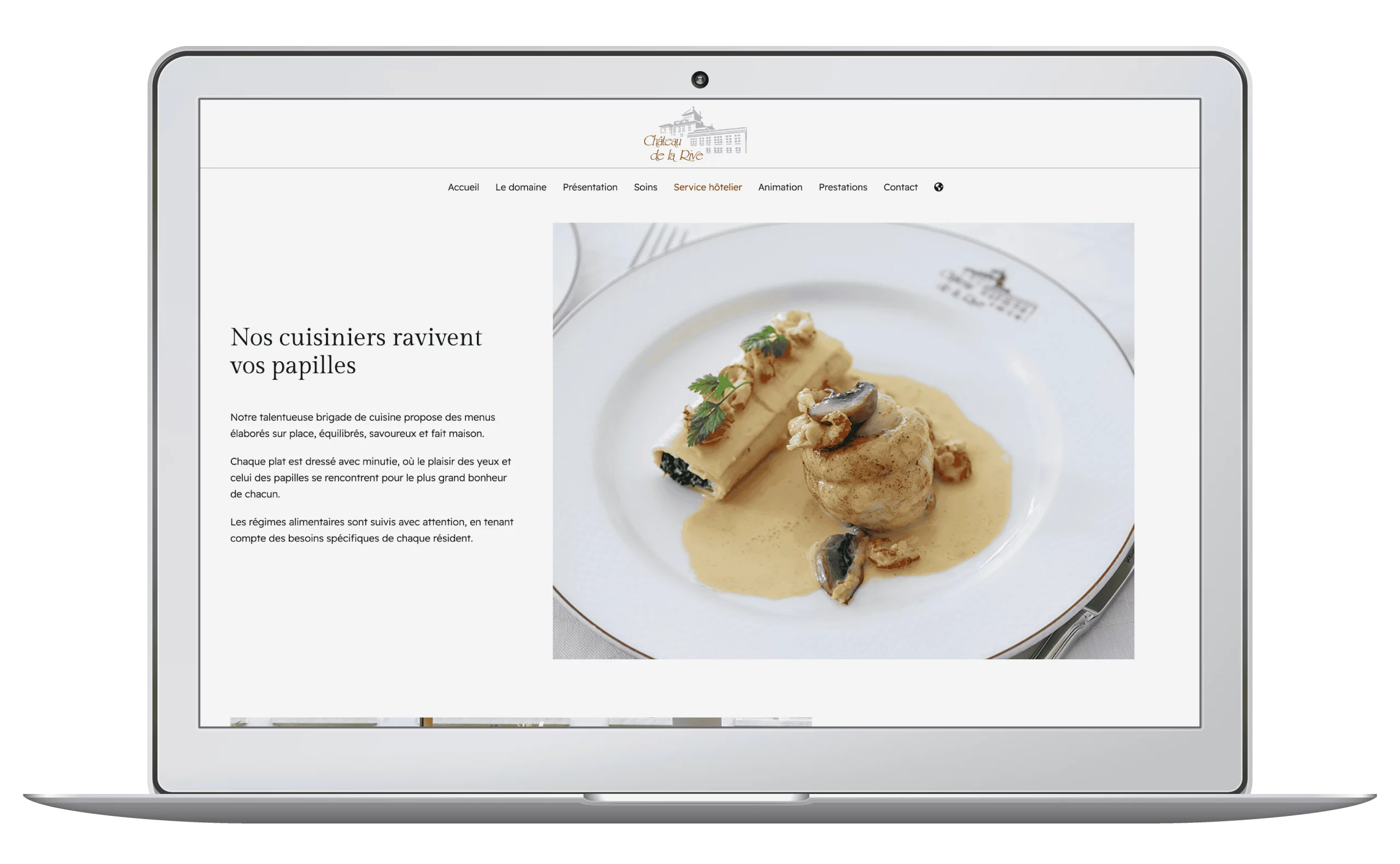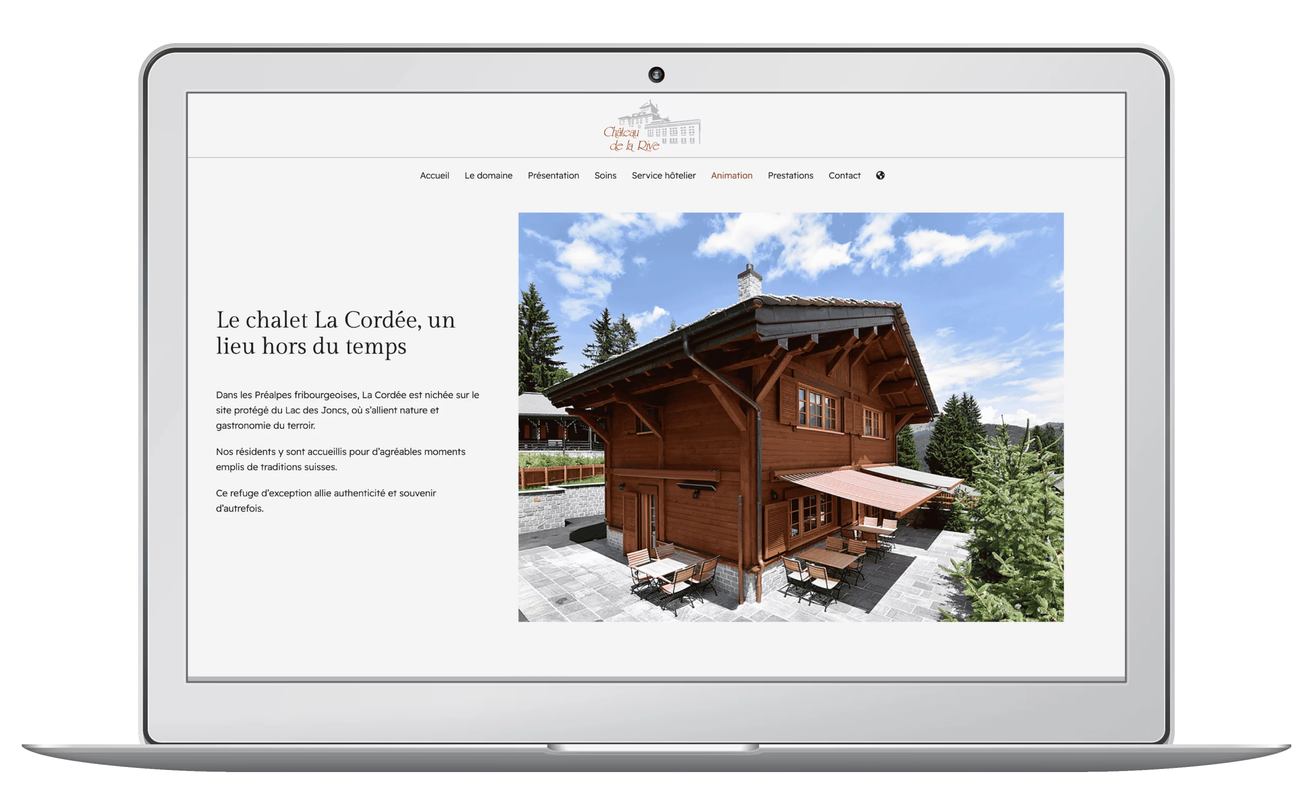Le nouveau site du Château de la Rive traduit fidèlement l’atmosphère chaleureuse et le service haut de gamme de l’établissement.
